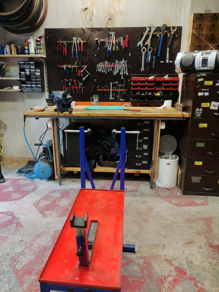 An der Toreinfahrt steht ein Schild aus Sperrholz, darauf der Schriftzug „FLINTA* Bike Space“. Leipzig ist eine bunte Stadt, überall sind die Wände mit Graffiti übersät – gerade hier im als alternativ geltenden Stadtteil Connewitz. Auf dem Weg zur Fahrrad-Selbsthilfewerkstatt prangt in der Tordurchfahrt „No Border – No Nation“ in großen Lettern an der Wand. Im zweiten Hinterhof, neben dem Tausch- und Umsonstladen, führt eine eiserne Tür durch einen Gang und in die Werkstatt. Dort fallen als Erstes die zahlreichen Felgen auf, die an der Decke aufgehängt sind. Rechts steht ein Tresen, dahinter eine Werkbank mit Werkzeug. Mitten im Raum stehen zwei Montageständer.